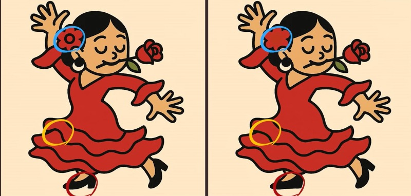 Den här gången måste du granska bilderna med en dansande flicka. Till det yttre ser de identiska ut, men det finns tre skillnader gömda mellan dem. Du har bara 43 sekunder på dig!