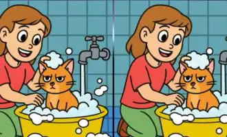 På bilden ser du först många kor, hö och en man med en högaffel som arbetar. Någonstans i stallet finns också en katt med svans. Det konstaterades att endast 1 person av 10 kommer att kunna hitta katten i bildpusslet i tid.