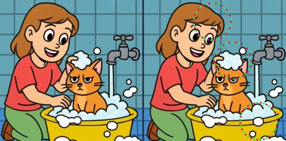 Är du redo att testa din uppmärksamhet? Ta en titt på två bilder av en flicka och hennes katt. Vid första anblicken ser de exakt likadana ut, men det finns tre små skillnader gömda i bilderna.