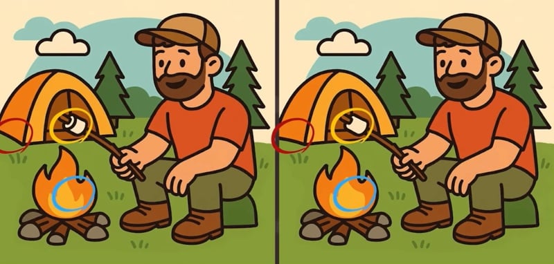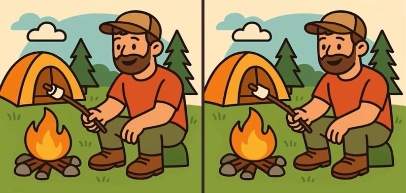 Den här gången måste du titta på bilderna av en man som grillar marshmallows vid elden. Vid första anblicken ser de exakt likadana ut, men konstnären har gömt tre små skillnader. Du har bara 51 sekunder på dig att hitta dem!