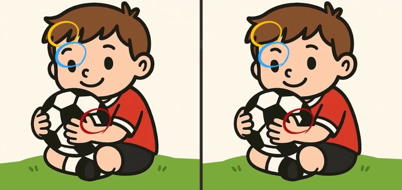 Framför dig har du två bilder med en pojke och en fotboll. Det finns tre skillnader gömda i dem, och din uppgift är att hitta dem på bara 49 sekunder.