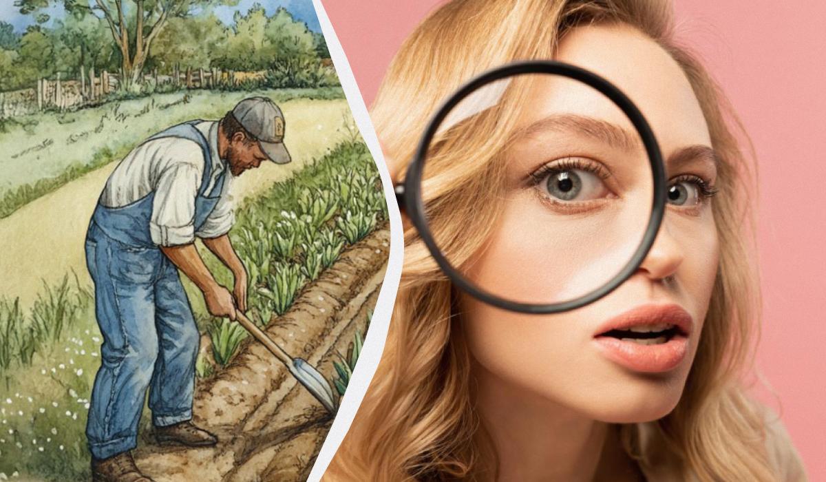Vi är säkra på att du har klarat av den här uppgiften ganska snabbt. Det är mycket enkelt: en av männen arbetar på fältet med en vanlig kvast.