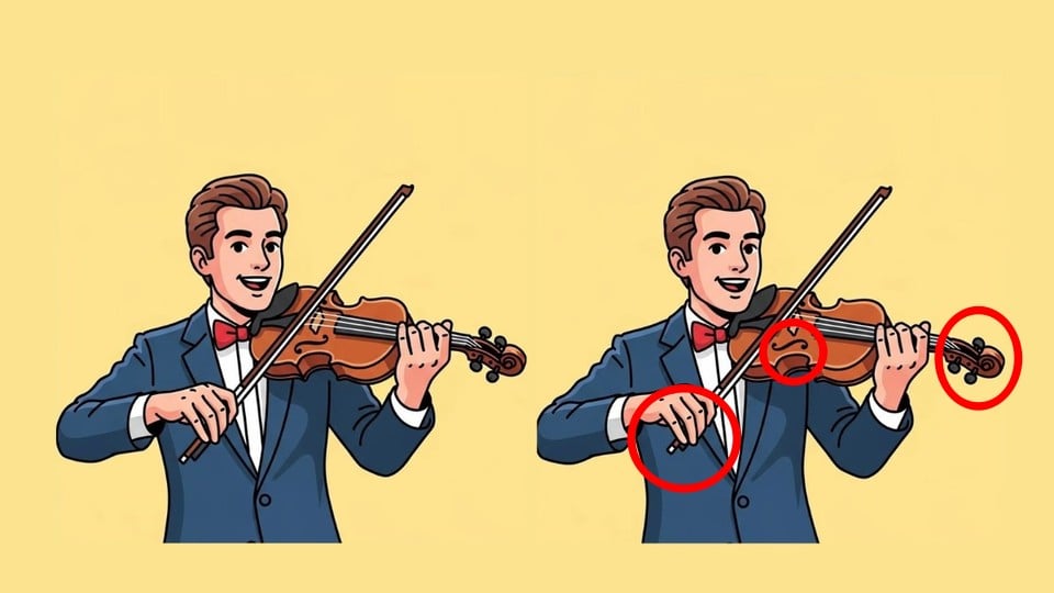 Är du redo att ta dig an en ny utmaning? Ta en närmare titt på de två bilderna med violinisten. Vid första anblicken ser de identiska ut, men det är en illusion – det finns tre små skillnader gömda mellan dem. Kommer du att kunna upptäcka dem alla på 37 sekunder? Det är dags att testa din uppmärksamhet!