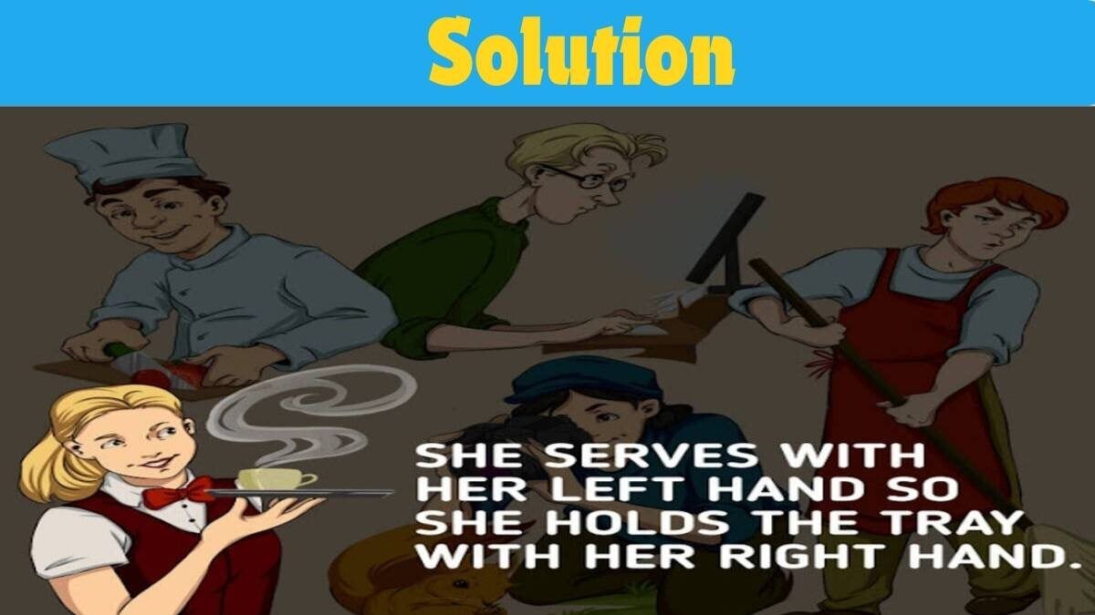 Vänsterhänt är servitrisen som håller brickan i sin hand. Flickan håller kaffebrickan i sin högra hand, vilket innebär att hon serverar med sin vänstra hand.