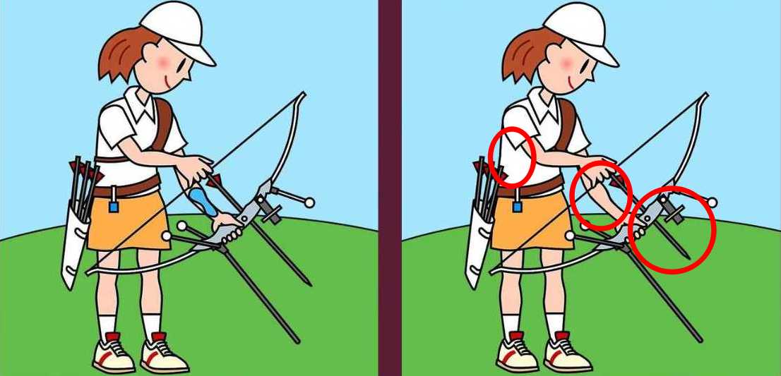 Endast personer med ”örnblick” kommer att kunna upptäcka de tre skillnaderna mellan bilderna på bågskytteflickan på mycket kort tid – bara 16 sekunder. Inte alla kommer att kunna göra det så snabbt.