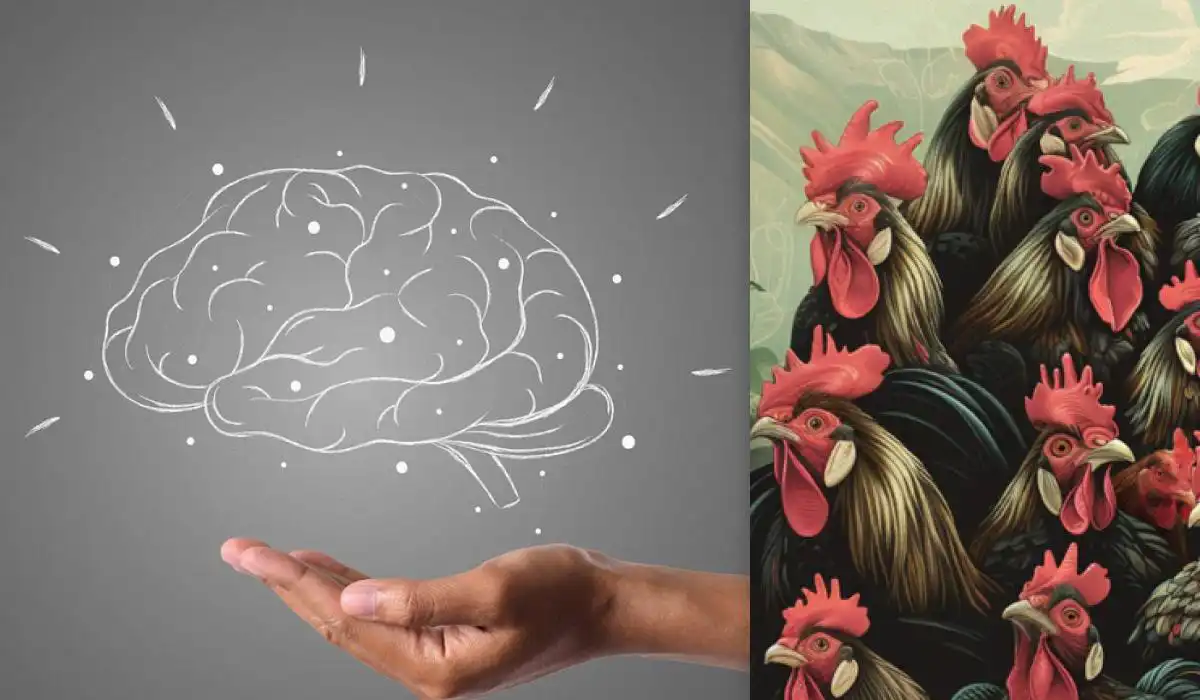 Det finns en sådan uppgift – du måste hitta en höna bland ett stort antal tuppar. Det finns bara en höna på bilden, och det tar 7 sekunder att hitta den. Utan logik och fantasi kan detta visuella test inte göras, eftersom du måste veta hur en höna skiljer sig från en tupp och visisera detta fjäderfä.