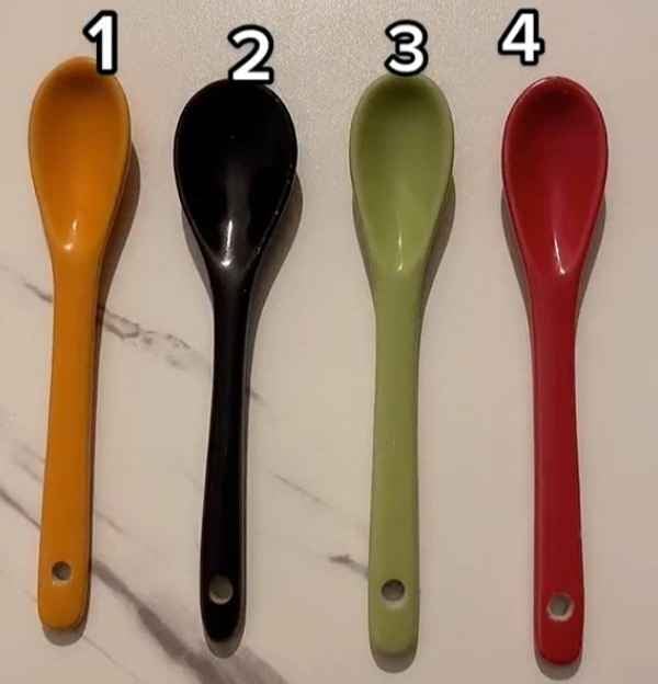 Du måste anstränga dig ordentligt för att gissa var bland dessa skedar den rödfärgade är gömd.