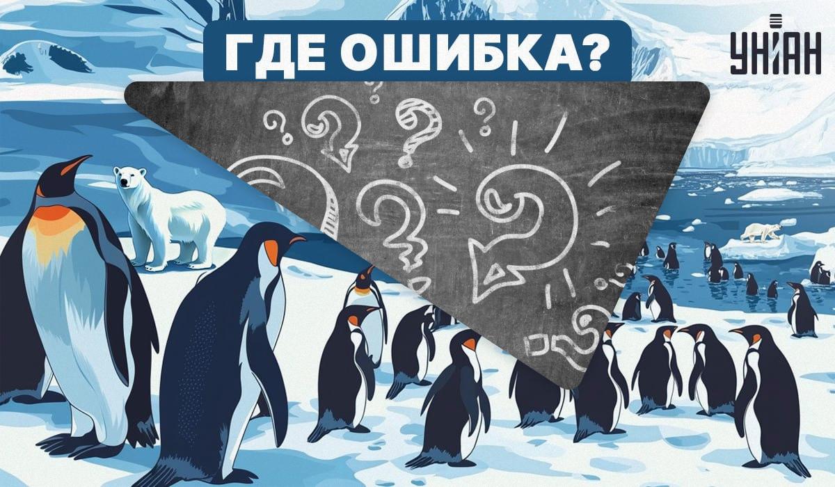 Bilden visar en flock pingviner som går på isen. Vid första anblicken ser bilden normal ut. Men det är den inte. Det finns ett uppenbart fel här, men kan du upptäcka det? För detta behöver du inte bara uppmärksamhet och logik, utan också ett brett perspektiv.
