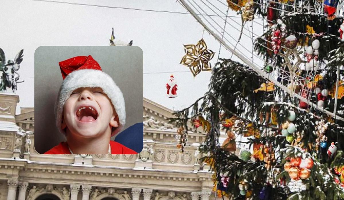 Nedan är ett foto av en majestätisk julgran dekorerad med olika leksaker. Fotografens lins fångade kransar, dekor i form av godis och stjärnor, samt 11 små figurer av Father Frost.