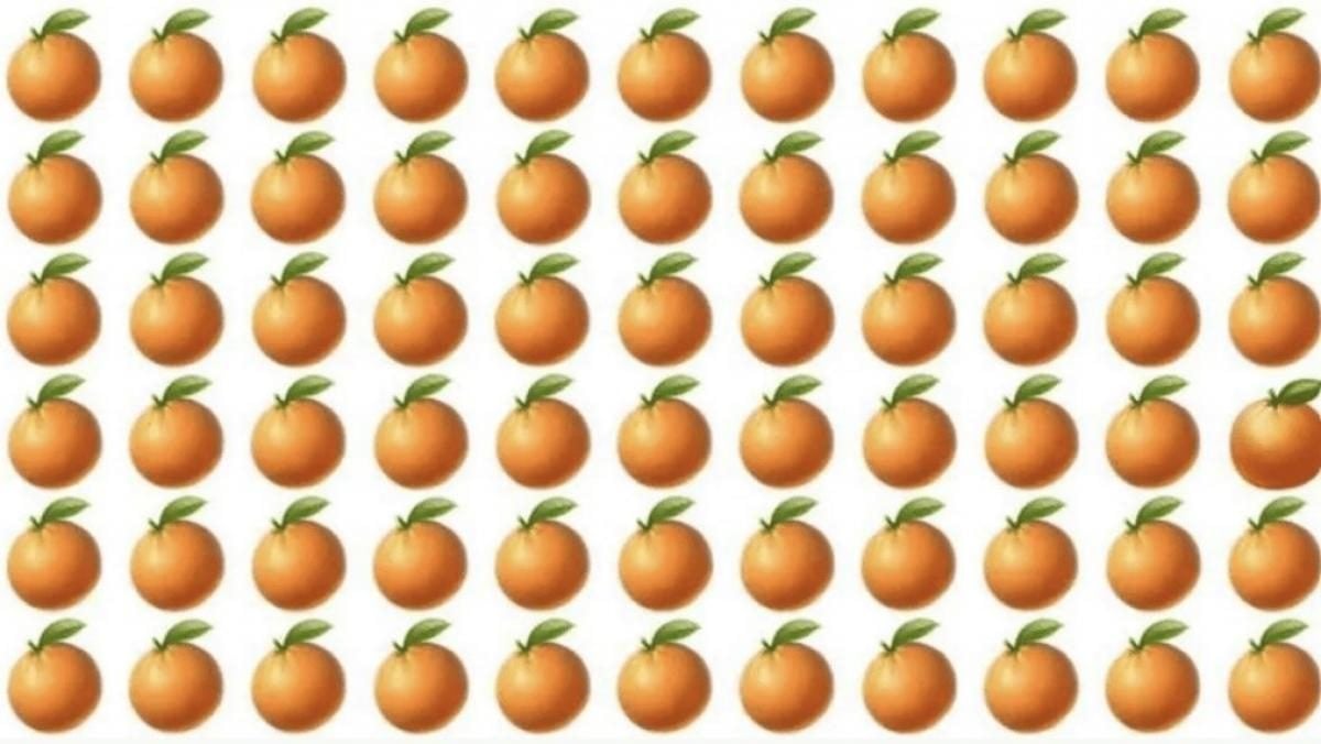 Lös ett underhållande, men inte det enklaste pusslet – du måste försöka mycket snabbt för att hitta apelsinen som skiljer sig från de andra på bilden.