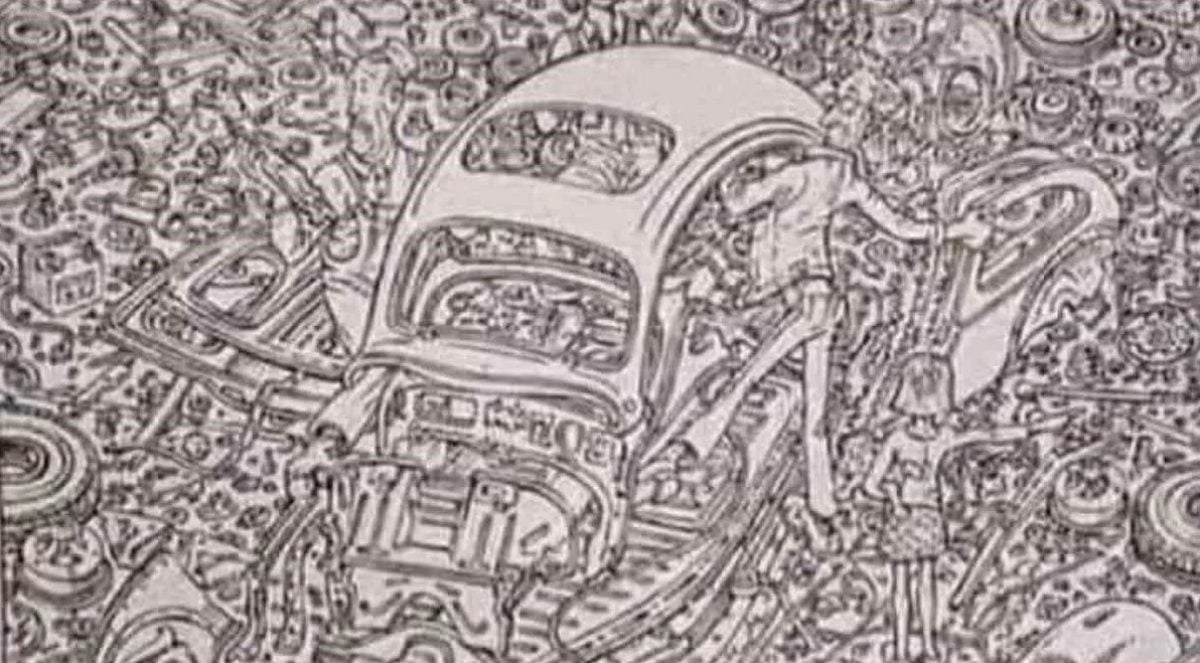 Försök att lösa en intressant, men mycket förvirrande optisk illusion – du måste hitta en katt bland de många föremålen i garaget, som är väl dold.