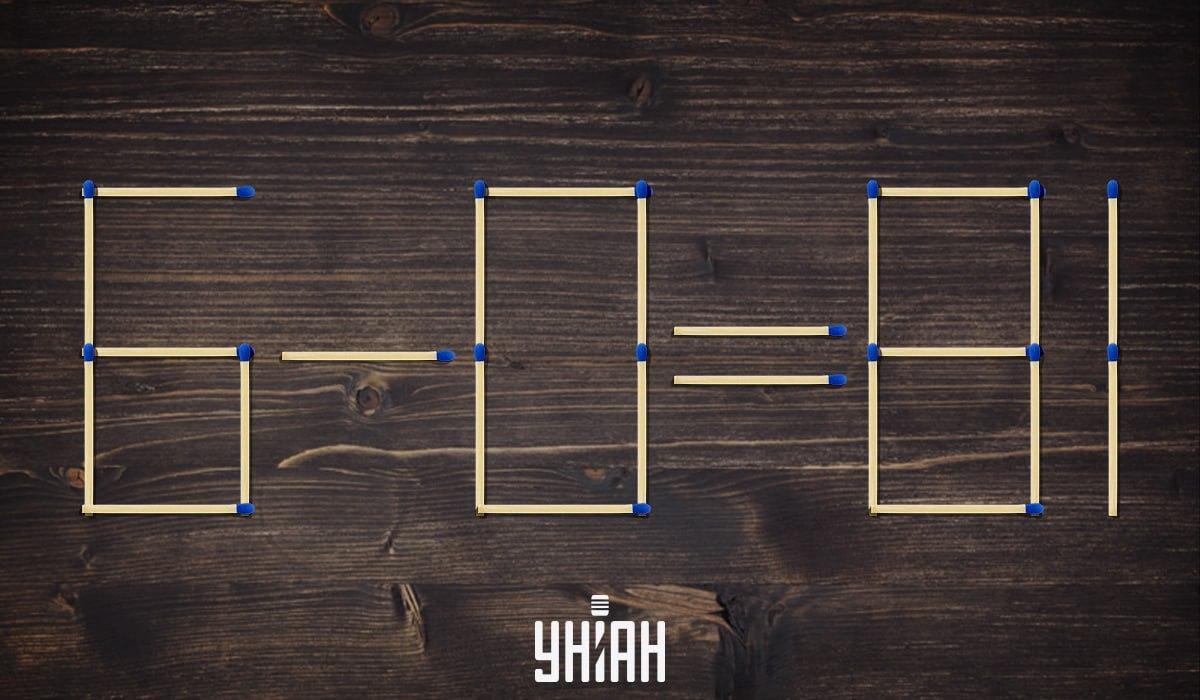 Bilden visar ett räkneexempel 6-0=81, som uppenbarligen är falskt. Du kan omorganisera bara 2 tändstickor för att få problemet att se korrekt ut. För att göra detta måste du tänka utanför boxen och ha god matematisk intuition.