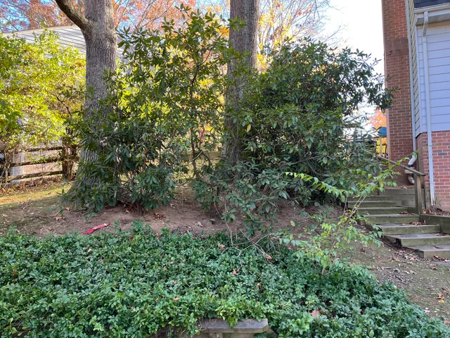 Hunden kan ses vid trädets fot på vänster sida, där en del av hans huvud kan ses.